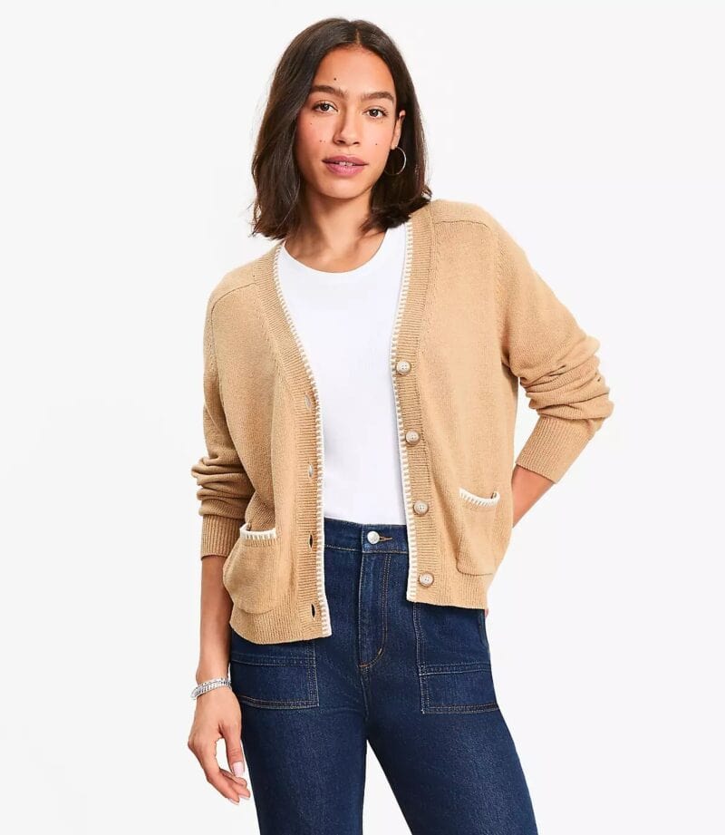 I’m seeing lots of classic cardigans now, but also some with interesting details and textures. Here are my personal favorites, and a few more that caught my eye, all of which will be travel-friendly options.