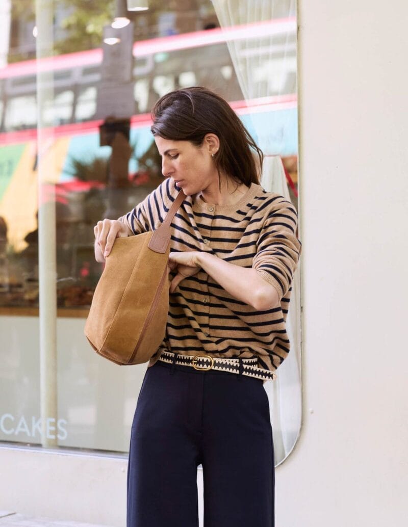 Had to include one with stripes, of course! The camel and navy combo isn’t one you see every day…
