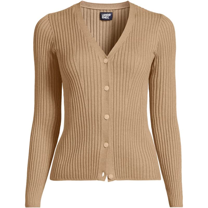 If you prefer a more fitted style, a ribbed cotton cardigan like this one is a versatile option. In Regular and Plus sizes. (Some smaller sizes no longer available.)