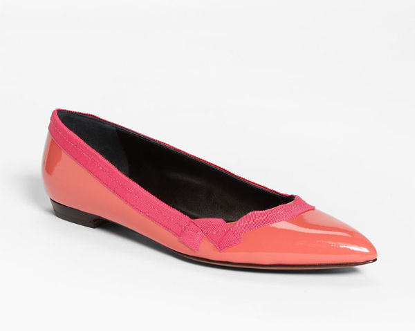 I’m not a fan of the strict interpretation of color-blocking, but honestly I think it’s mostly used as a buzzy-sounding catchall for wearing solid brights in combination, which I do like. I have a pair of vivid coral Bloch ballerinas with a black cap toe that I like quite a lot with jeans, but I find them a little loud with dresses. I’m not at my best in flats, and although I love them on other people, colorblocked flats make me look like my feet are two vividly hallucinating hams.
