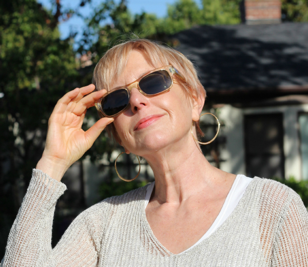 Pseu Psue Pseu! I LOVE it! Which surprises me- as I am partial to redheads, and am sort of meh on blondes in general- but you look vibrant and it’s fresh and fun. Love the top pic- perfect clothes to go with your new “golden” age.
