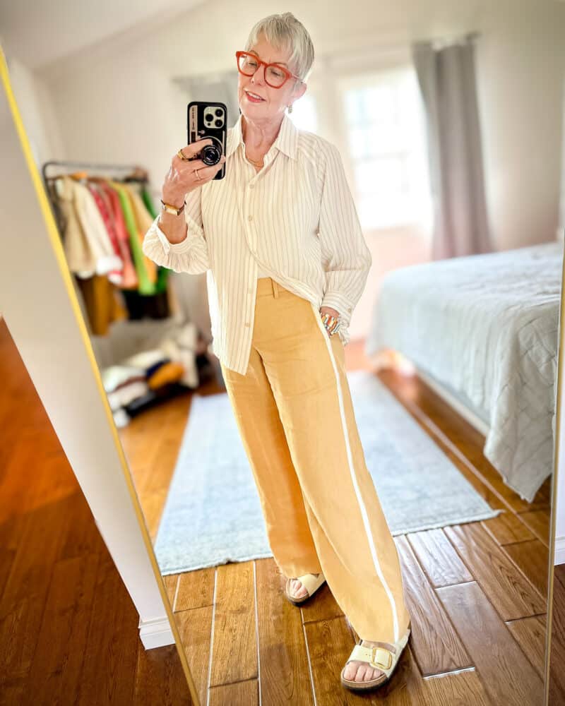 Thank you what a nice reminder. The yellow pants are great, I was hoping they would have a cool toned version with a stripe. I have always hoped to achieve balance in my clothes but this spring I have really leaned into the oversized look- generally not me.