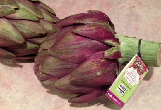 Last week I spotted these at one of our local grocery stores. This is the time of year when artichokes are usually abundant and at their best, but I have been disappointed so far in this year’s crop. It’s been late coming in, and the chokes have been a bit tough and flavorless.