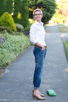 And Angie at YouLookFab mixes her leopard low heels with boyfriend jeans.
