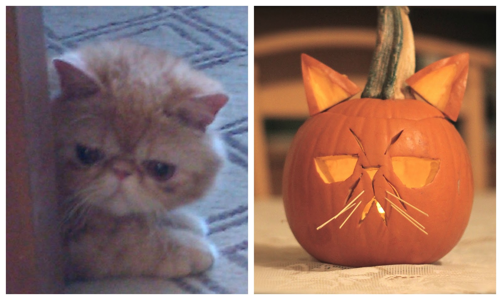I promised Wendy Brandes I’d carve a pumpkin to look like her grumpy-faced cat, FitzRoy. It’s a bit crude perhaps, but I think I’ve captured his essence here…