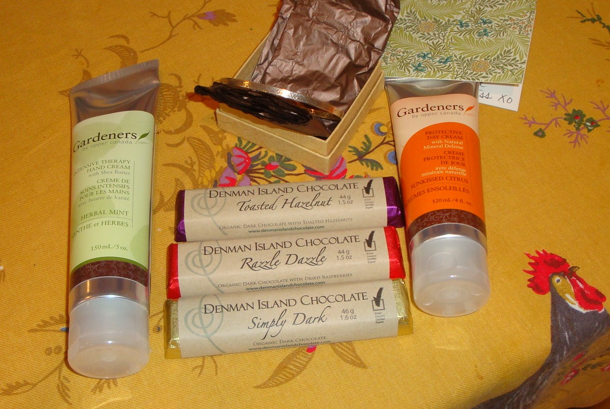 Some artisinal chocolates, some Gardeners hand lotion and sunscreen (oh yes!), and a divine silver bangle…what incredible treats! Thank you so much Hostess!