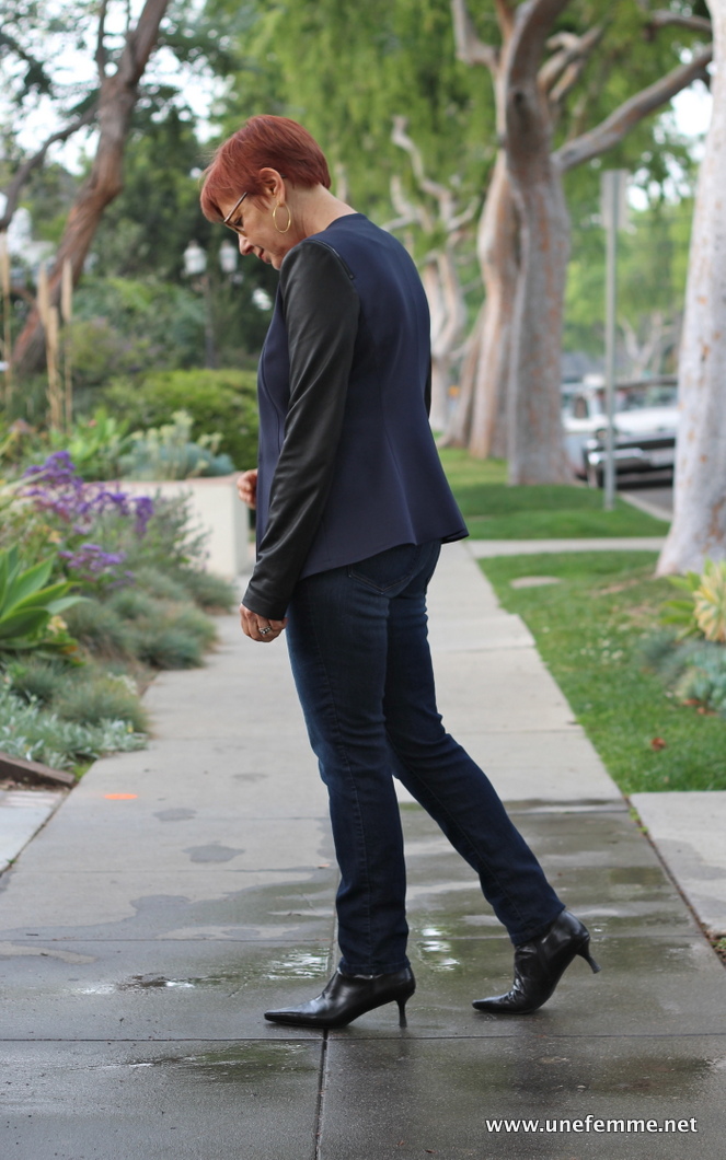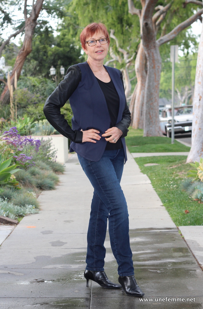 Très jolie, chère Madame. Elegante et moderne à la fois. Bravo! — Love the jacket. Flattering cut and color, and these leather sleeves are a brilliant idea! Veronique (French Girl in Seattle)