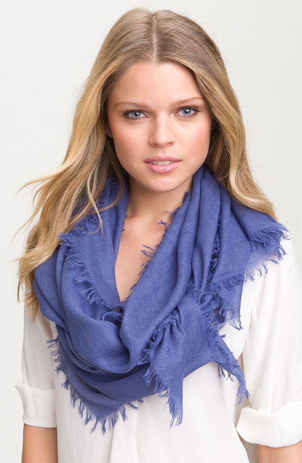 Above, this “eyelash” (fringed on all edges) cashmere/silk blend wrap at Nordstrom is a perfect spring scarf. It’s feather light but warm, easy to style and is available in dozens of colors. I particularly like the color shown here, “Blue Merlin,” which would play nicely with neutrals. The label says “Dry Clean,” but I’d hand wash with some J.Crew The Laundress cashmere wash, and line dry.