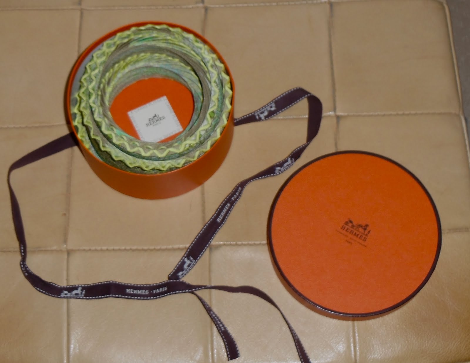 I recently bought a hat rack with many curls and swirls at the top of it. That has all of my scarves hanging on it…some might think it looks like a big hairy monster! But it works, I can see all of them and pull them out and hang them back easily. I did a post about it back in January. But, if I was lucky enough to own a Hermes scarf…it would be treated with great care…probably one of those home care dry clean kits to clean it!