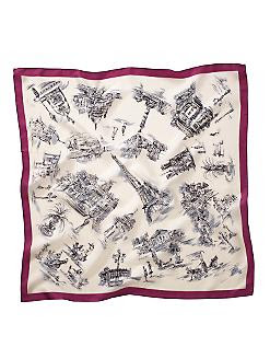“Day in Paris” silk scarf. Lots of Oh la la! for $44.