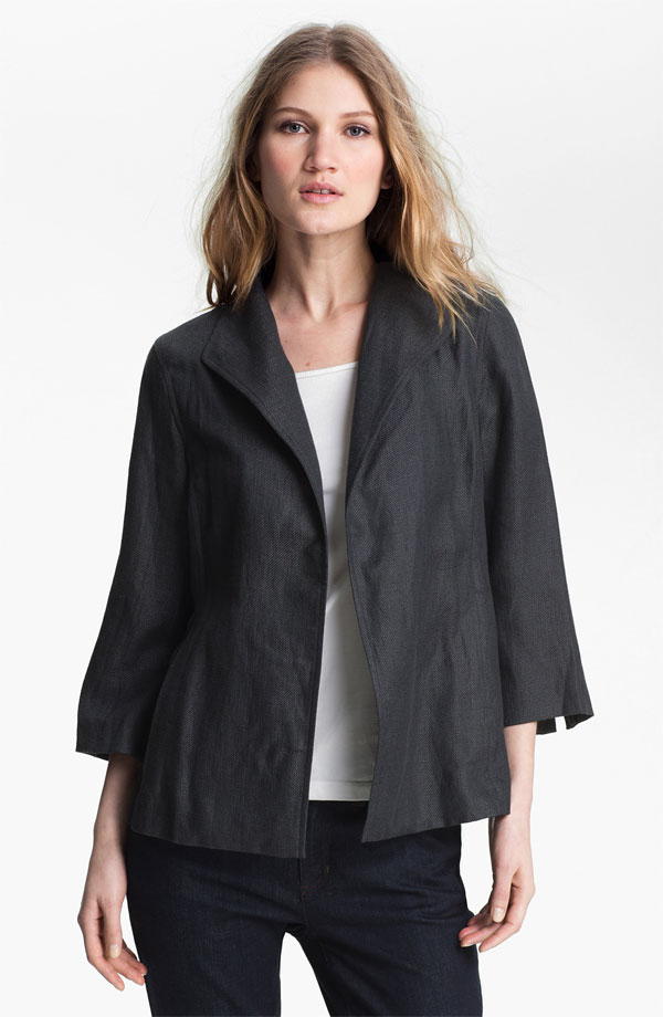 This unstructured linen jacket is a bit more casual, but the graphite color is a nice alternative to black and for those whose workplace allows some creative latitude, might be a good summer option.